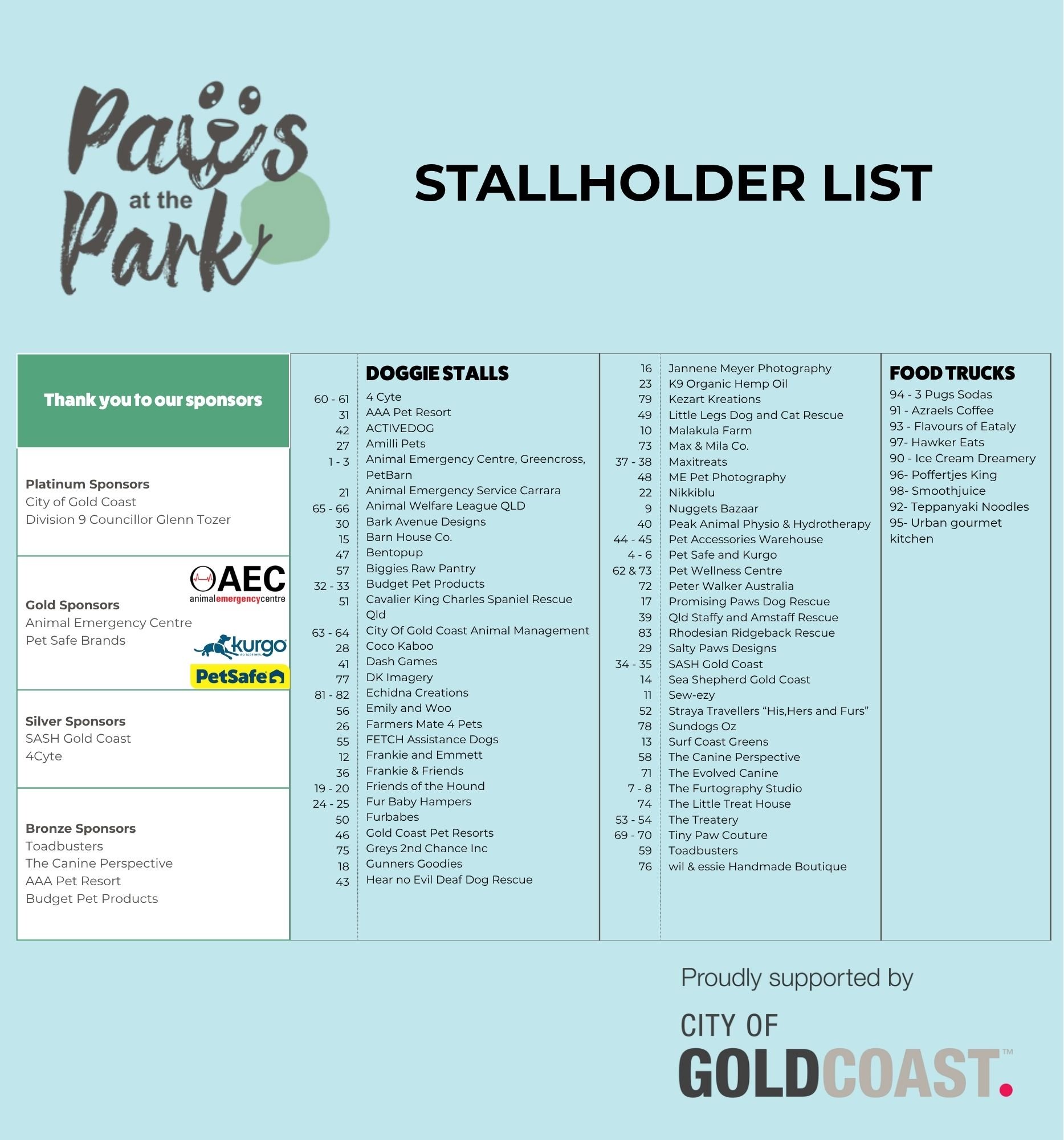 “We’re proud to support the 2025 Paws in the Park along with our friends Greencross Vets and Petbarn.”
